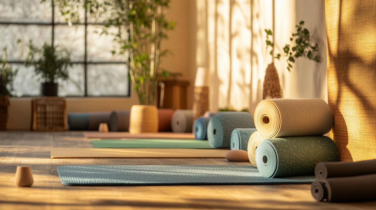 El corcho, por su parte, ha ganado popularidad gracias a sus propiedades antimicrobianas y su capacidad de absorción de sudor. Este material natural ofrece una superficie que mejora su agarre con la humedad, ideal para sesiones intensas o hot yoga. El PVC, aunque duradero y económico, plantea preocupaciones ambientales debido a la presencia de ftalatos y su lenta degradación. Materiales como el yute, el bambú y el algodón orgánico aportan un enfoque ecológico, combinando resistencia con un impacto ambiental reducido. La elección del material debe alinearse con las preferencias personales, el tipo de práctica y los valores de sostenibilidad de cada yogui.